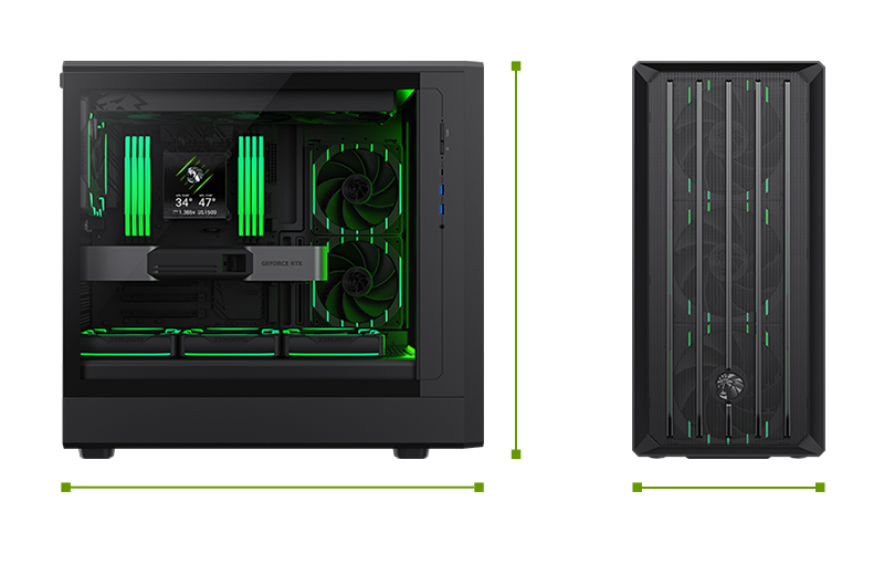 High-airflow mesh front and vertical airflow layout ensure efficient heat dissipation during demanding workloads or gaming sessions.