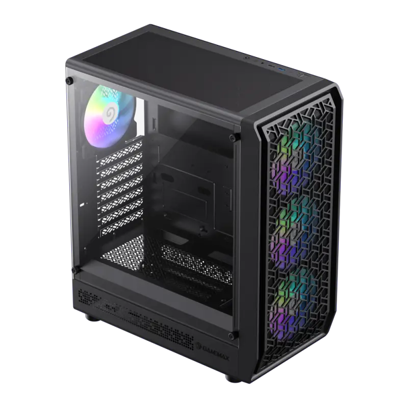 Forge AB Premium Mid Tower ATX PC Case by GameMax:•Unique Airflow & Cooling: Forge AB Premium features a unique airflow design with 6 ARGB fans and 360mm radiator support for optimal cooling.•Full-View tempered glass side panel showcases an view of your installation components.•Dense Mesh Dust Filter: Prevents dust while allowing ample airflow.•Spacious Interior: Accommodates high-end graphics cards, large coolers, and various motherboard sizes.•Versatile Compatibility: Supports EATX, ATX, M-ATX, and ITX form factors.