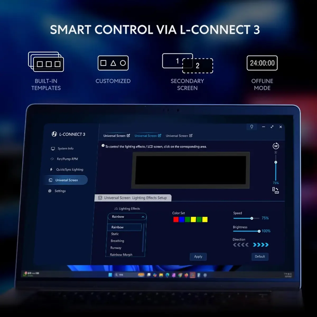 Dynamic Control with L-Connect 3: Customize your viewing experience with L-Connect 3 software. Access preset themes and modular information, and upload your own videos and photos to create a personalized display that suits your style.