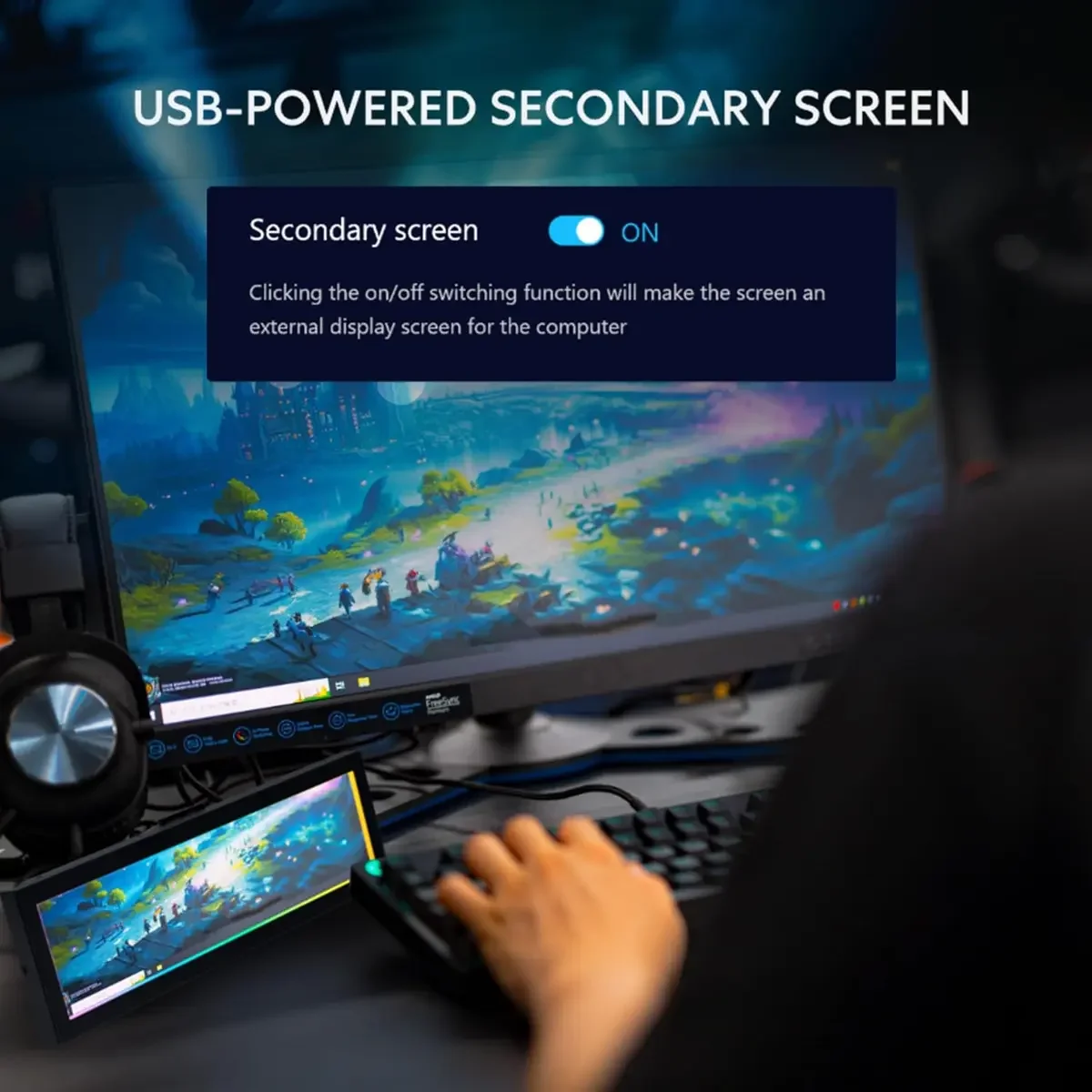 USB-Powered Secondary Display: Enjoy plug-and-play connection via a 9-pin port or Type-A USB. This innovative design allows the 8.8" screen to function independently as a secondary monitor, displaying hardware stats, media, or custom visuals without using valuable GPU ports.