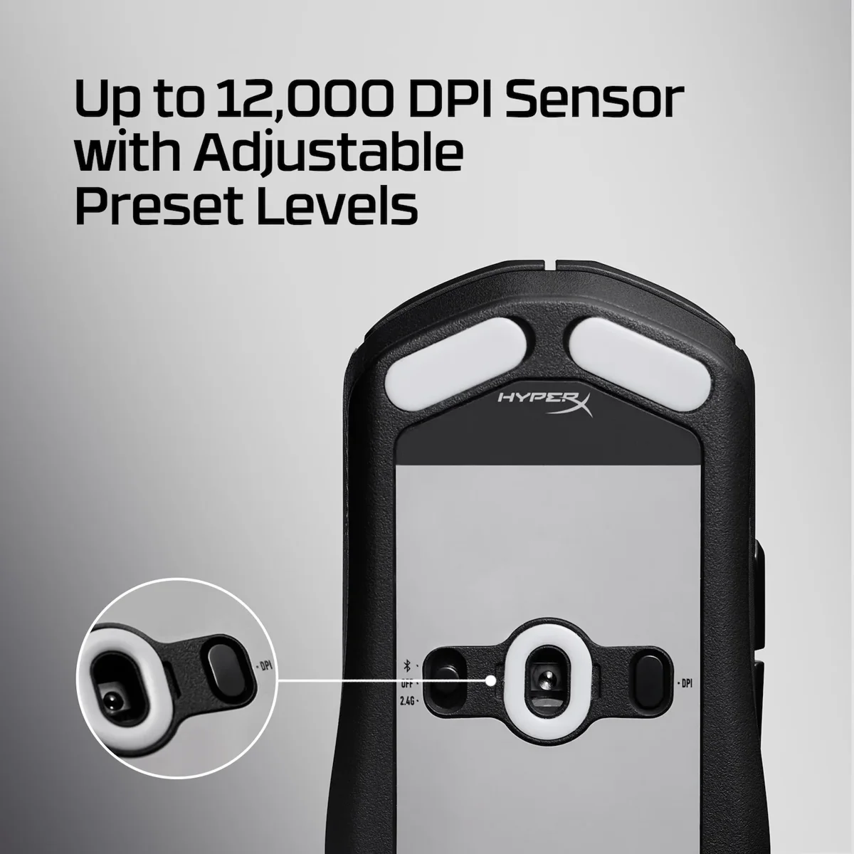 The HyperX Pulsefire Fuse features a sleek, ambidextrous design with Microline grip textured panels, seamlessly blending comfort and control. With a lightweight frame of only 75g, including the battery, it’s engineered for a responsive and agile feel, allowing for extended gaming sessions with reduced fatigue. With Pulsefire Fuse, you can enjoy up to 85 hours[1] of uninterrupted gaming on a single AAA battery. It offers customizable DPI presets up to 12,000 and dual wireless connectivity options - 2.4GHz or Bluetooth- for versatile performance. HyperX NGENUITY software allows you to tailor DPI levels, RGB[2] settings, and button assignments, to ensure that you play your way. With its lightweight build and long-lasting battery performance, HyperX Pulsefire Fuse guarantees that you can game comfortably and consistently without compromise.