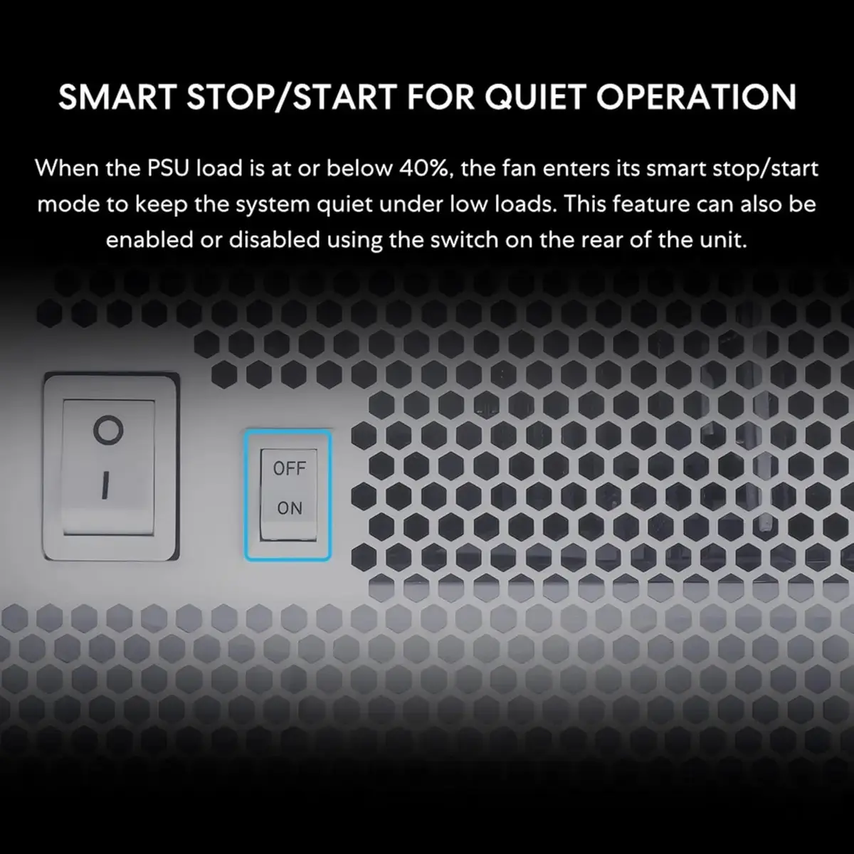 Fanless operation up to 40% load with smart stop/start for whisper-quiet performance.